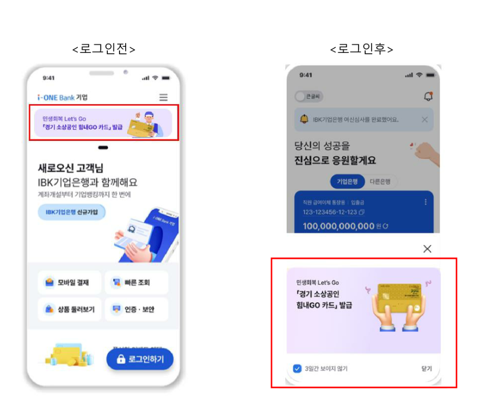 신청은 경기신용보증재단 Easy One 앱에서 진행됩니다. 앱에서 신규 보증 신청을 선택하고, ‘힘내GO 카드 보증’을 클릭하세요. 사업장 사진을 새로 촬영해 업로드해야 하며, 심사는 오전 9시~오후 4시입니다. 보증 승인 후 기업은행 앱에서 카드를 발급받습니다.